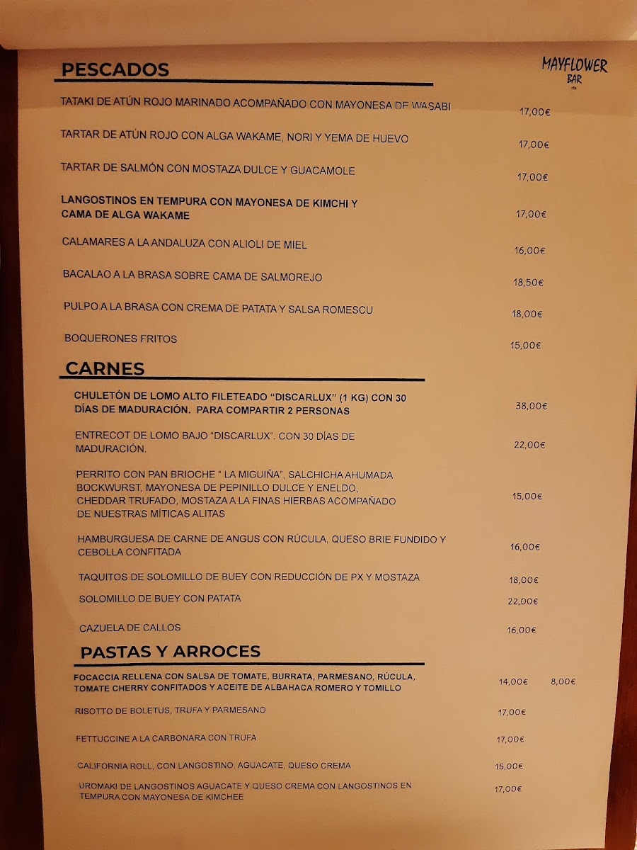 The menu at Mayflower Bar Restaurante offers a thoughtful blend of Mediterranean and Spanish flavors with a modern fusion twist. It’s a mix of casual bites and hearty dishes that feel at home whether you’re dropping in for a relaxed lunch, enjoying a shared dinner, or unwinding with a drink in the evening.